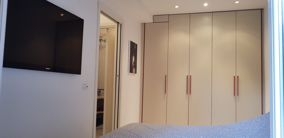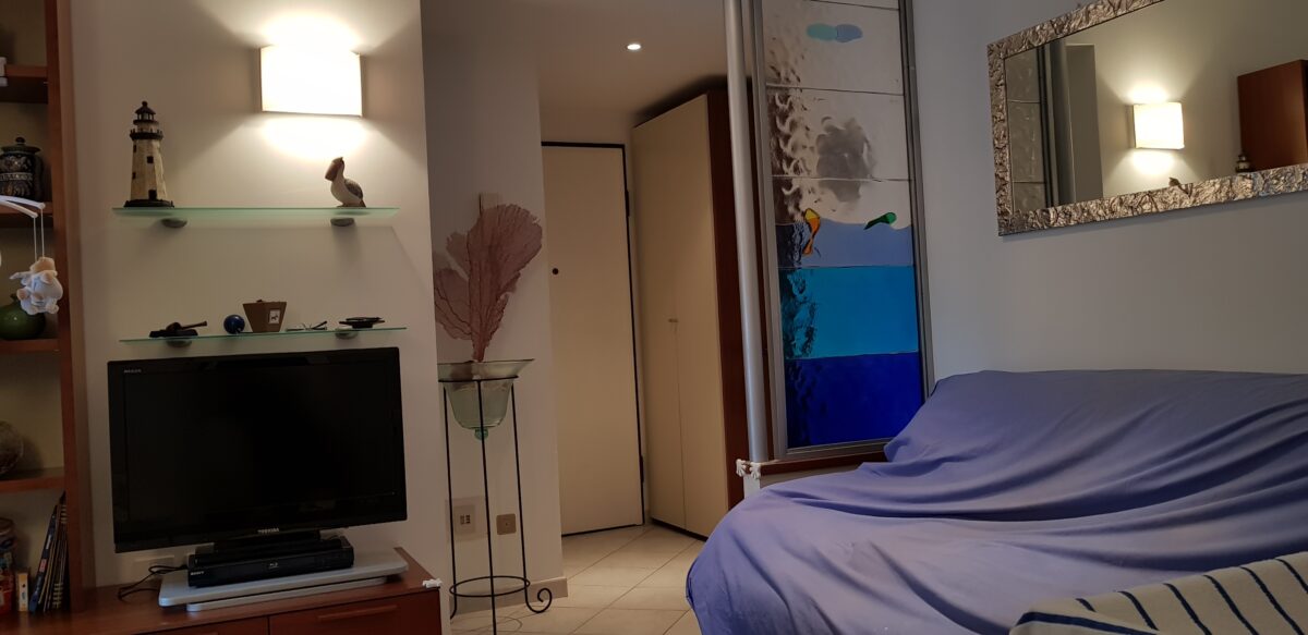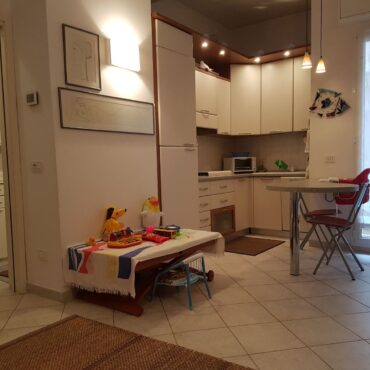 Grande e ampio bilocale di nuova realizzazione in piccola palazzina centralissima e con box auto di proprietà. Primo piano in palazzotto elegante e ben servito da ogni negozio, vicinissimo alle spiagge e dalle bassissime spese di gestione annuali. Internamente composto da ingresso su disimpegno, soggiorno living con cucina a vista e uscita sul primo balcone, spazio di accesso alla zona notte dove si ha una comoda cabina armadio, camera da letto matrimoniale ampia a spaziosa con uscita sul secondo balcone, bagno completo finestrato. Arredato con cura e con mobilio su misura. Termoautonomo e climatizzato. Soluzione comodissima per posizione e vicinanza agli stabilimenti balneari. Acquisto ideale sia come acquisto casa vacanza che acquisto per la messa a reddito.