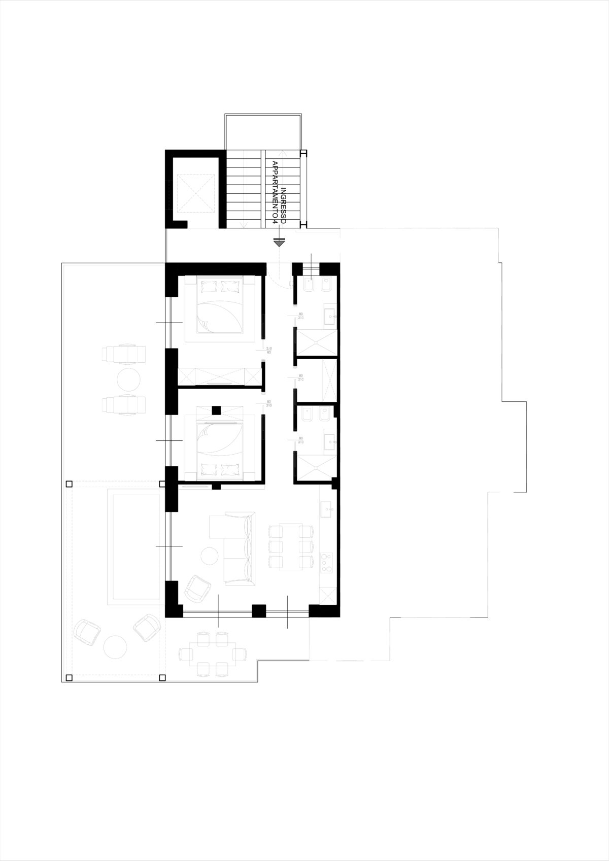 Sulla grande terrazza con una profondità massima di 3,4 metri, si ha la possibilità di godere dello spazio esterno unito alla tranquillità ed una FAVOLOSA VISTA MARE.