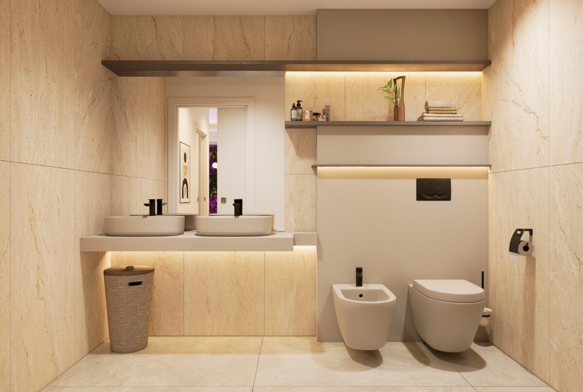 L’appartamento ‘1B’ è un alloggio di circa 75 mq con un giardino privato di oltre 105 mq dove si ha una favola vista mare frontale.