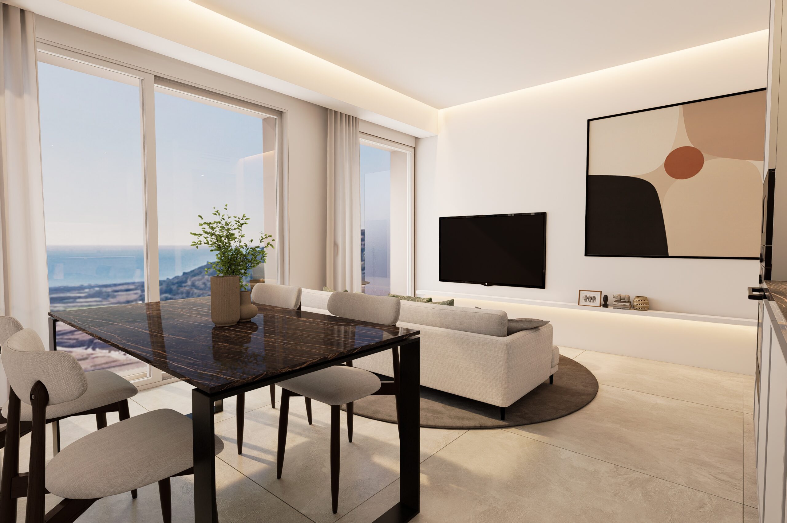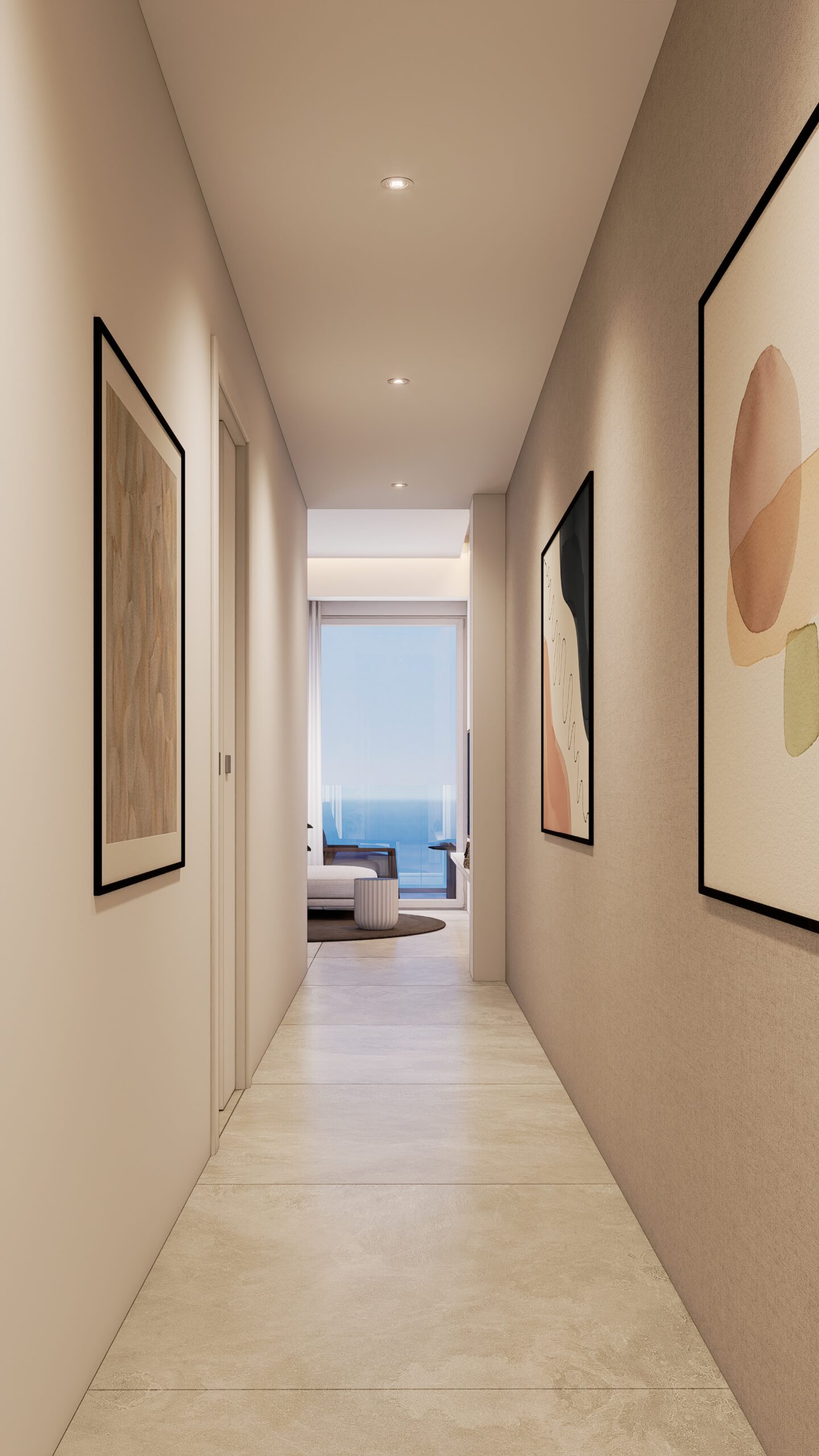 Secondo piano con ascensore composto da ingresso su corridoio, soggiorno con cucina a vista, due camere da letto, bagno completo con doccia e due terrazzini da cui si ha una bellissima VISTA MARE.
